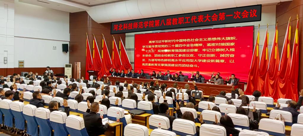 我校八届一次教职工代表大会暨工会会员代表大会历时一天,顺利完成各项议程,在雄壮的《国际歌》声中胜利闭幕。