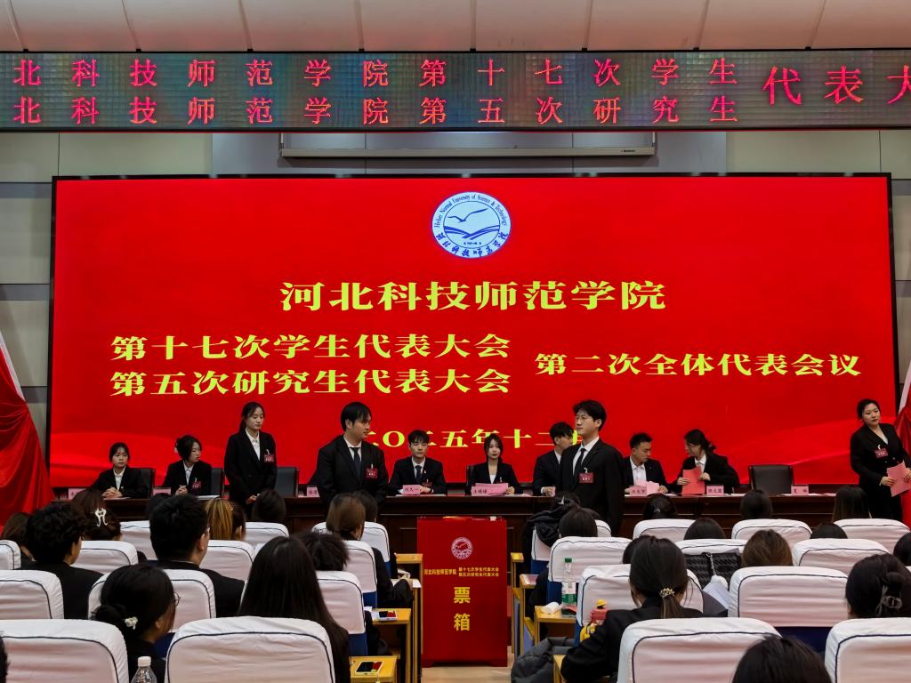 大会总结了过去一年校学生会、研究生会的工作,确定了未来一年的工作任务,审议通过了《河北科技师范学院第十六届学生会工作报告》《河北科技师范学院第四届研究生会工作报告》《河北科技师范学院第十七次学生代表大会暨第五次研究生代表大会提案工作报告》《河北科技师范学院学生会章程修正案》、《河北科技师范学院研究生章程修正案》,选举产生了我校第十七届学生会委员会、第五届研究生会委员会。